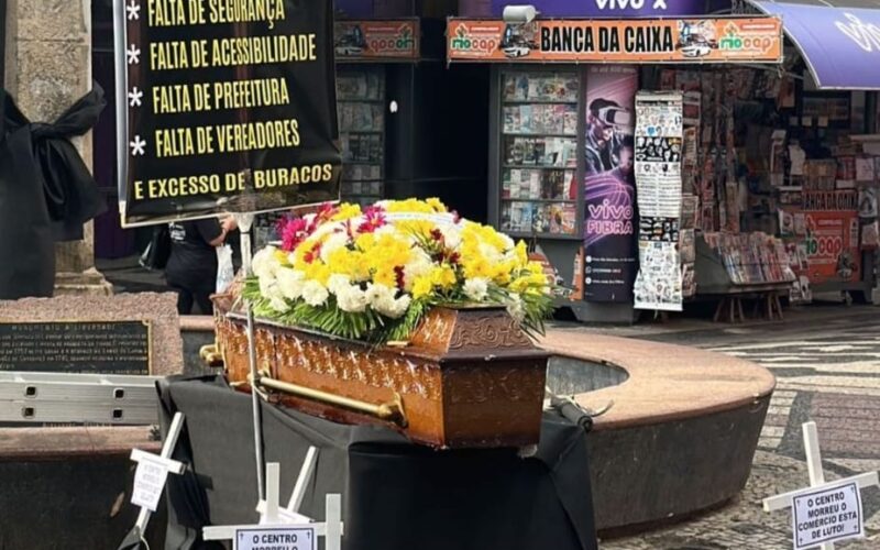 Comerciantes e moradores da área central de Campos protestam na manhã desta sexta-feira (16)...