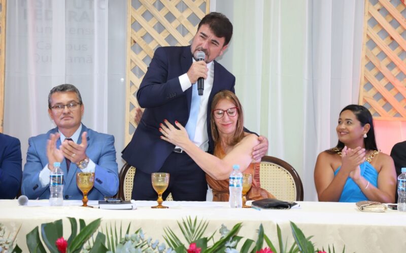 A prefeita reeleita de Cardoso Moreira, Geane Vincler (União Brasil), a vice-prefeita Neriete...