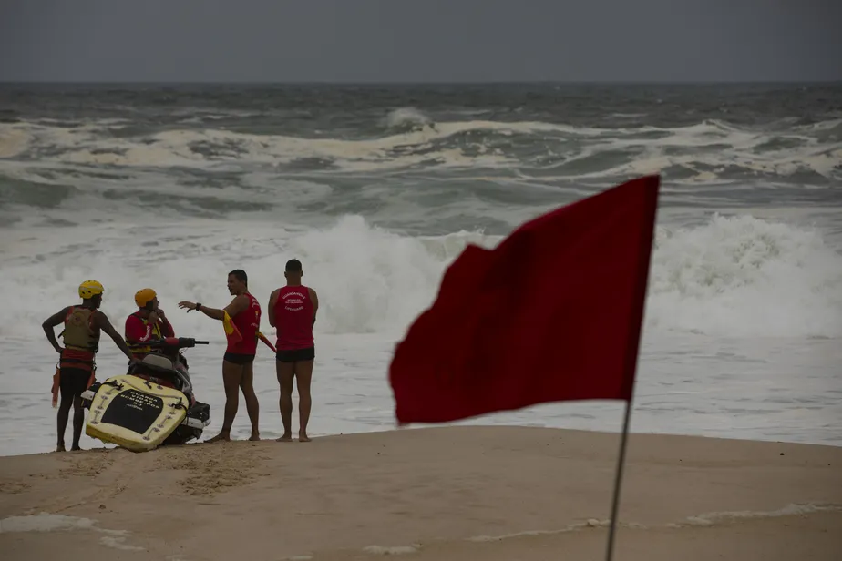 Ressaca no mar afasta banhistas e surfistas, por conta de ondas irregulares