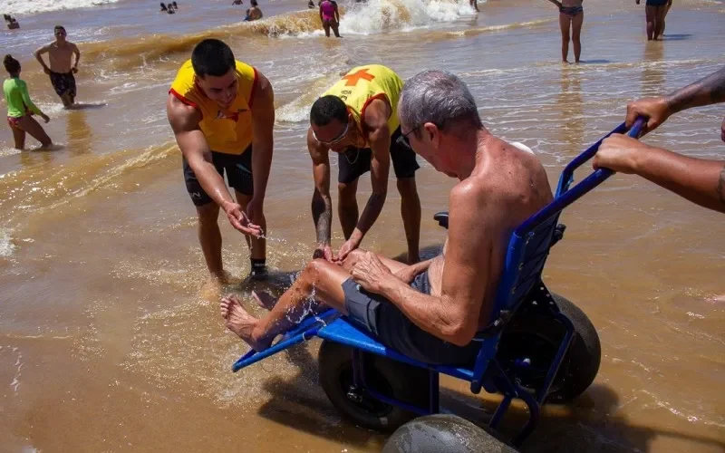 Pessoas com deficiência ou mobilidade reduzida podem utilizar as cadeiras anfíbias...