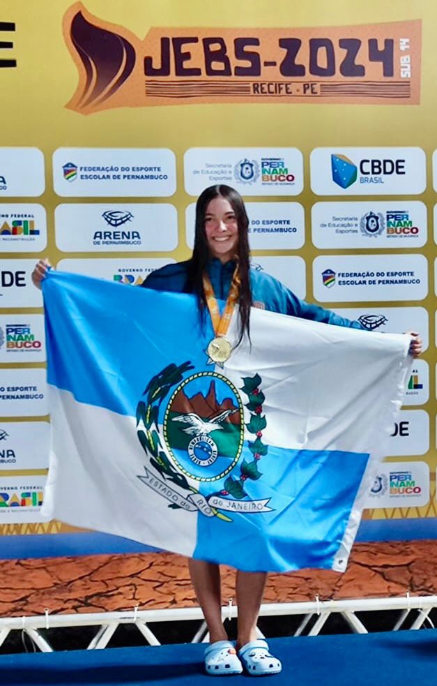 A nadadora de Campos Nicole de Thuin, 14 anos, que integra a delegação do Estado do Rio de Janeiro nos Jogos Estudantis Brasileiros – JEB’s-2024 fez bonito no evento conquistando 2 medalhas de ouro nos 50m e 100m livre e 3 de prata nos revezamento. Nicole também registrou recorde do campeonato nos 100m livre, ao fazer o tempo de 1.00.34 seg. Com o resultado, Nicole que é aluna do Colégio Nossa Senhora Auxiliadora- Censa/Campos, está pré- convocada para os Jogos Sul- Americanos Estudantis, que vão acontecer na Colômbia, em 2025, representando a Seleção Brasileira Estudantil de Natação.