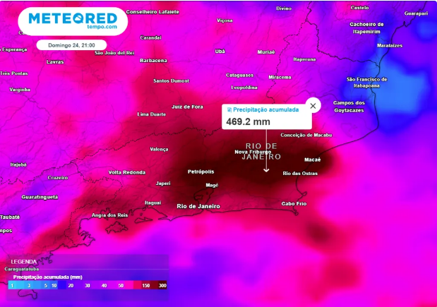 Alerta: previsão de quase 500 mm acumulado de chuva previsto para o Rio de Janeiro