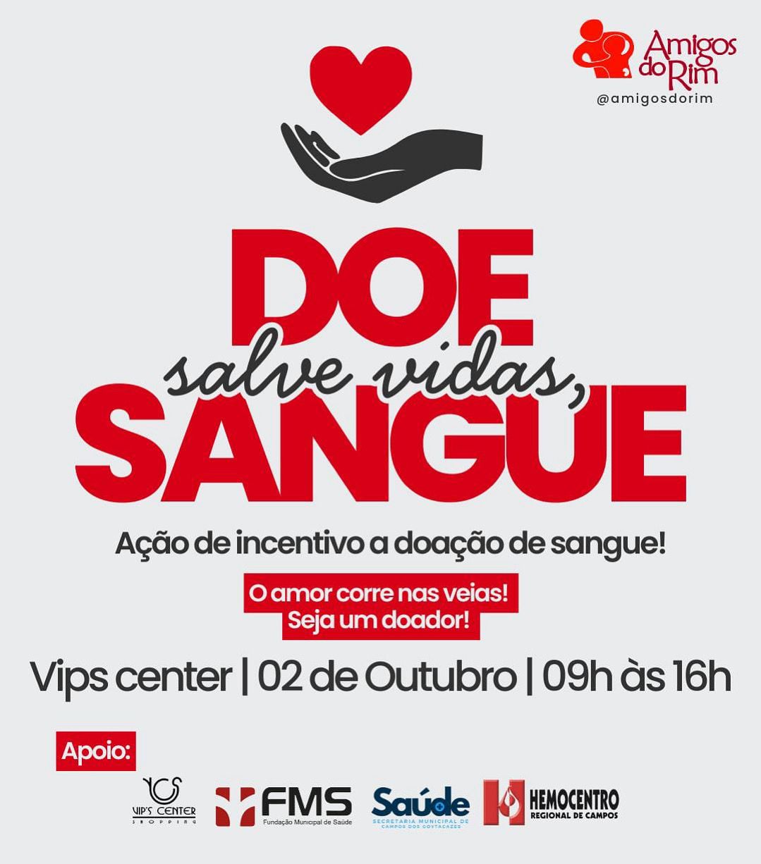 A ação acontece das 9h às 16h, no VIP Center Shopping, reunindo voluntários e mobilizando a comunidade para um gesto que pode salvar vidas.