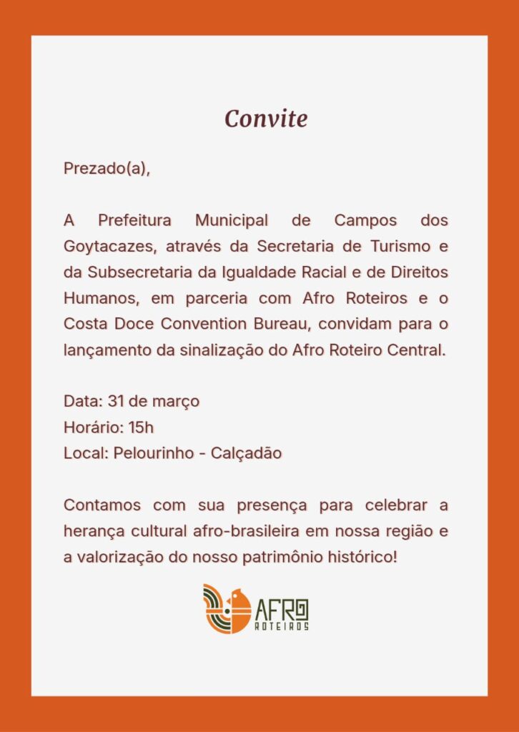 Campos dos Goytacazes dá um passo importante na valorização da memória e da cultura afro-brasileira com o lançamento do Afro Roteiro Central, previsto para esta terça-feira, 31. A iniciativa propõe um novo olhar sobre a história da cidade, destacando a presença e a contribuição da população negra na formação do município.