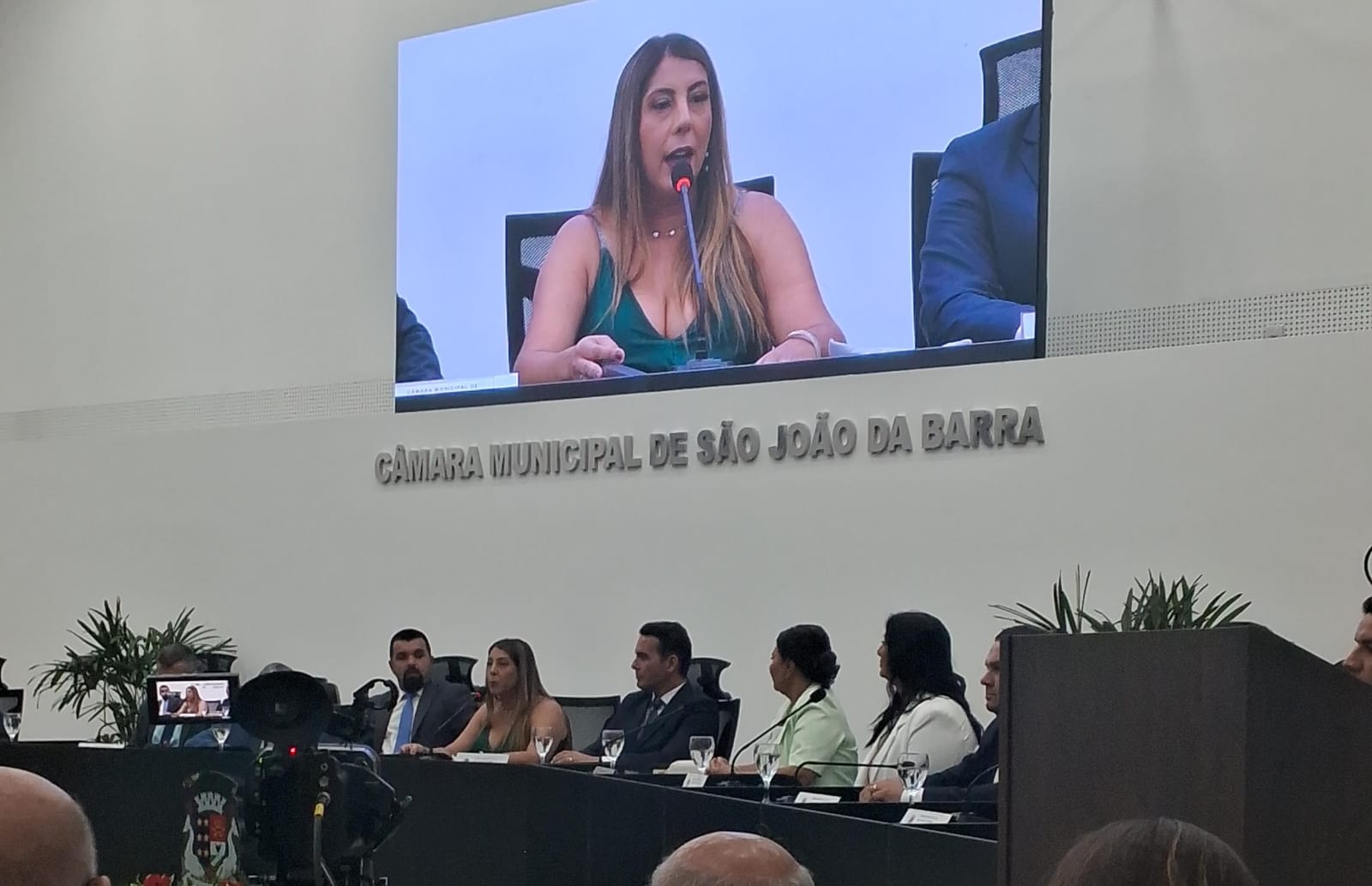 A prefeita de São João da Barra, Carla Caputi (União) tomou posse no início da noite, na Câmara Municipal, ao lado do vice Chico da Quixaba (PT) e os vereadores. A cerimônia foi conduzida por Juninho Monteiro (União), vereador mais votado nas eleições de outubro passado. Na Câmara, a vereadora Soninha Pereira (PT) foi eleita presidente por unanimidade (veja mais após o vídeo).