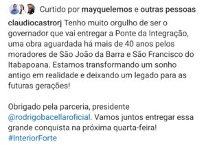 O governador Cláudio Castro anunciou para a próxima quarta-feira, 12 de fevereiro, a inauguração da esperada Ponte da Integração Deputado João Peixoto, que ligará São João da Barra a São Francisco de Itabapoana.