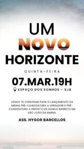 No mesmo dia haverá o lançamento da pré-candidatura a vereador de Hygor Barcelos, sindicalista e presidente do Sindicato dos trabalhadores portuários de São João da Barra (Sindiport).