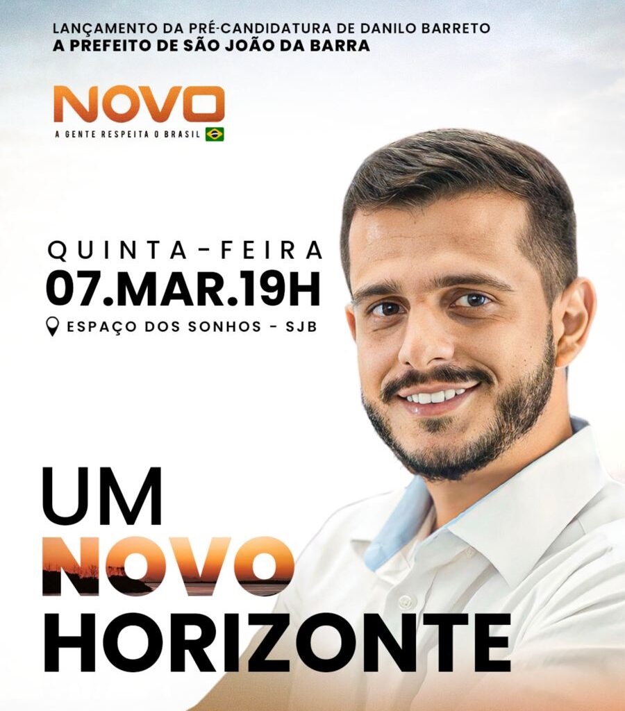 Candidato a vereador mais votado da sede, Danilo Barreto lança sua pré-candidatura a prefeito de São João da Barra na próxima quinta-feira, 7, a partir das 19h, no Espaço dos Sonhos. Danilo afirma que será o nome da “verdadeira oposição” na disputa de outubro à cadeira de Carla Caputi (Sem partido), candidata à reeleição. A possibilidade da candidatura de Danilo foi apontada no Blog de Arnaldo Neto.