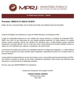 Dos 7 candidatos a prefeito de Campos, apenas Fabrício Lírio aguarda julgamento do registro