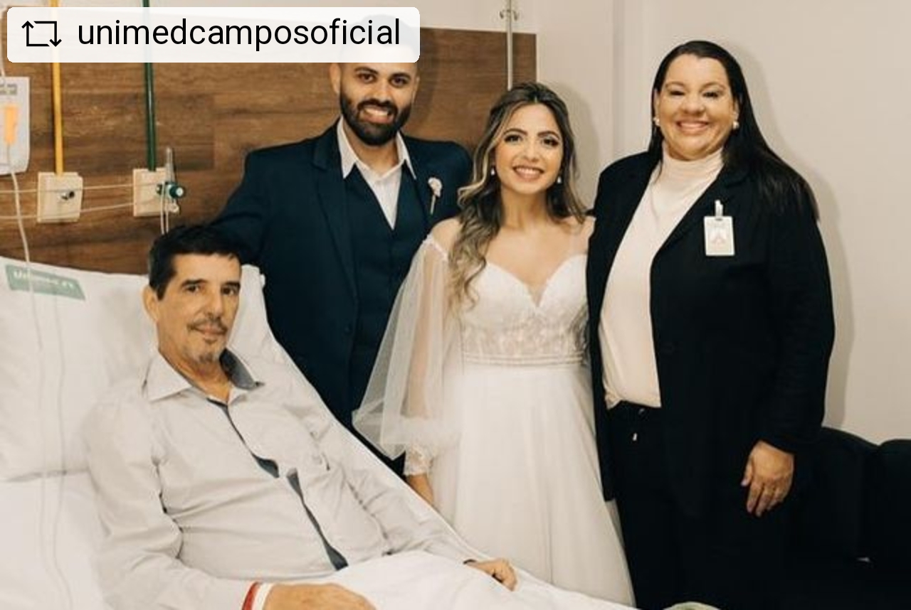 Para que o pai participasse do momento mais importante de sua vida, uma jovem casou-se dentro do hospital da Unimed, em Campos.