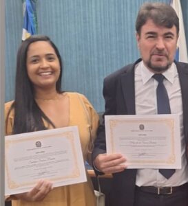 O prefeito eleito de Quissamã, Marcelo Batista (PP) , e a vice-prefeita eleita, Sabrine Pereira (PDT), foram diplomados no final da manhã desta quarta-feira (18), no Fórum do município. A cerimônia também diplomou os 11 vereadores eleitos e os suplentes para o mandato de 2025/28.