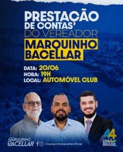 O presidente da Câmara de Campos, Marquinho Bacellar, realiza, na próxima quarta-feira, 20, reunião de prestação de contas, no Automóvel Clube Fluminense, a partir das 20h.