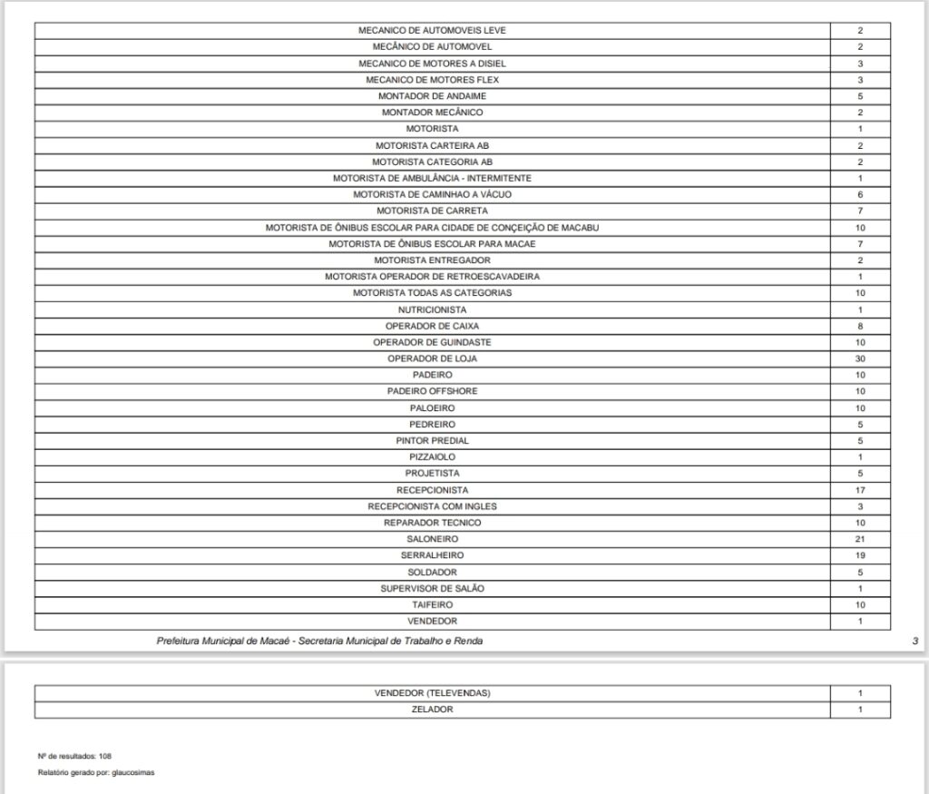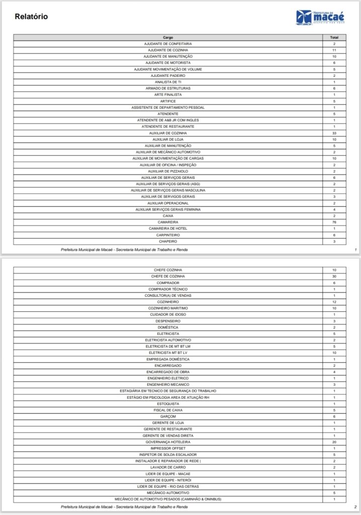 Confira abaixo a lista completa de vagas disponíveis.