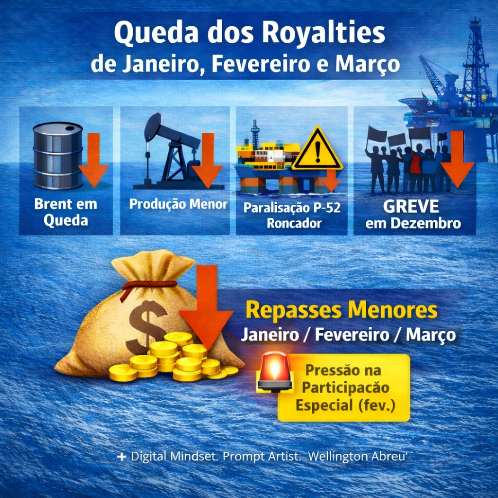 Produção em queda, petróleo mais barato e paralisações explicam redução dos royalties na região