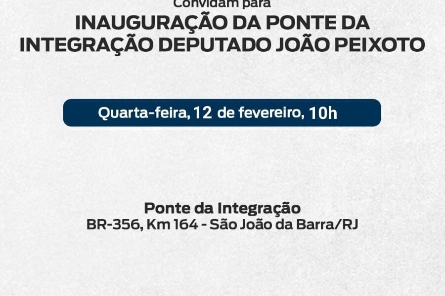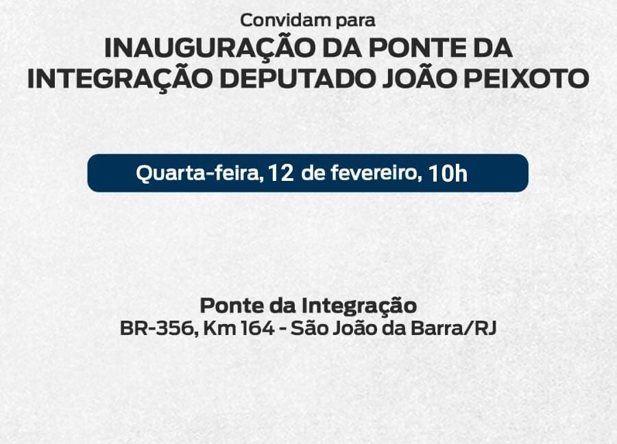 Para quem ainda duvidava, segue o convite da inauguração da Ponte da Integração Deputado João Peixoto.Nesta quarta-feira, dia 12, às 10h.Veja mais sobre a AQUI e AQUI