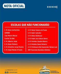 Confira a Nota Oficial da Prefeitura e no final a situação de cada escola